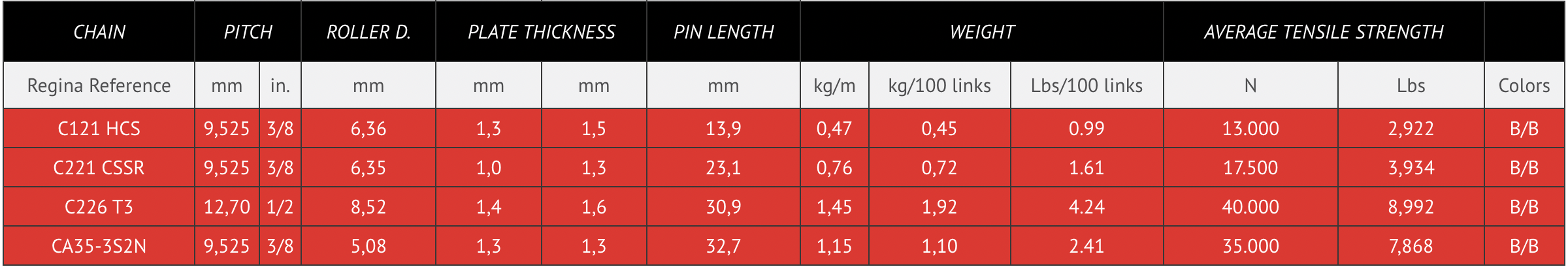 Primary Chain Duplex 3/8x1/4 : 76 Links REGINA 17,500N